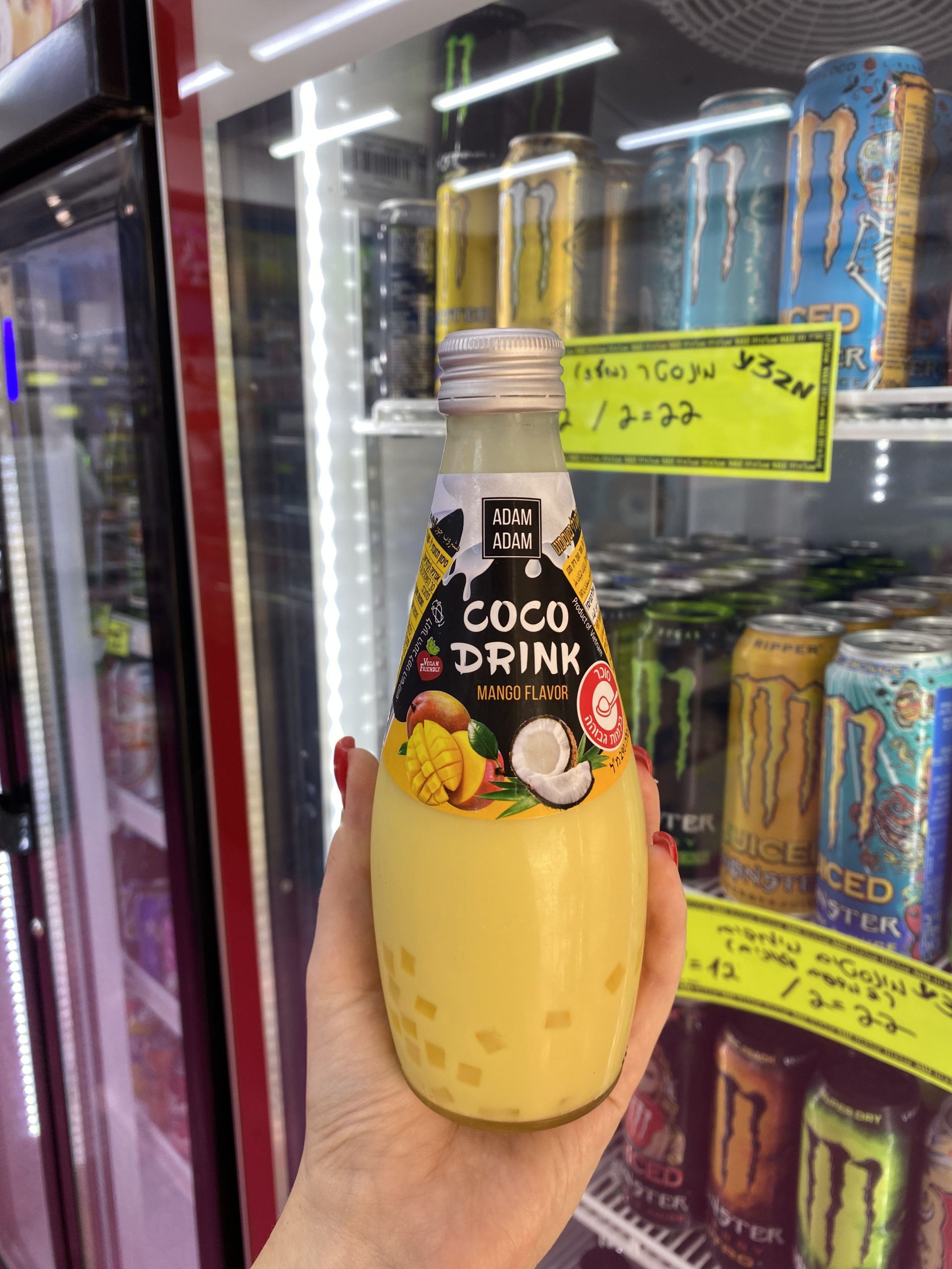משקה קוקוס בטעם מנגו עם חתיכות של ג׳לי קוקוס